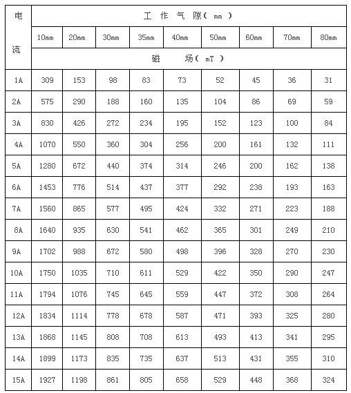 3.4 磁場強度: H≥0.8T 工作氣隙35mm時